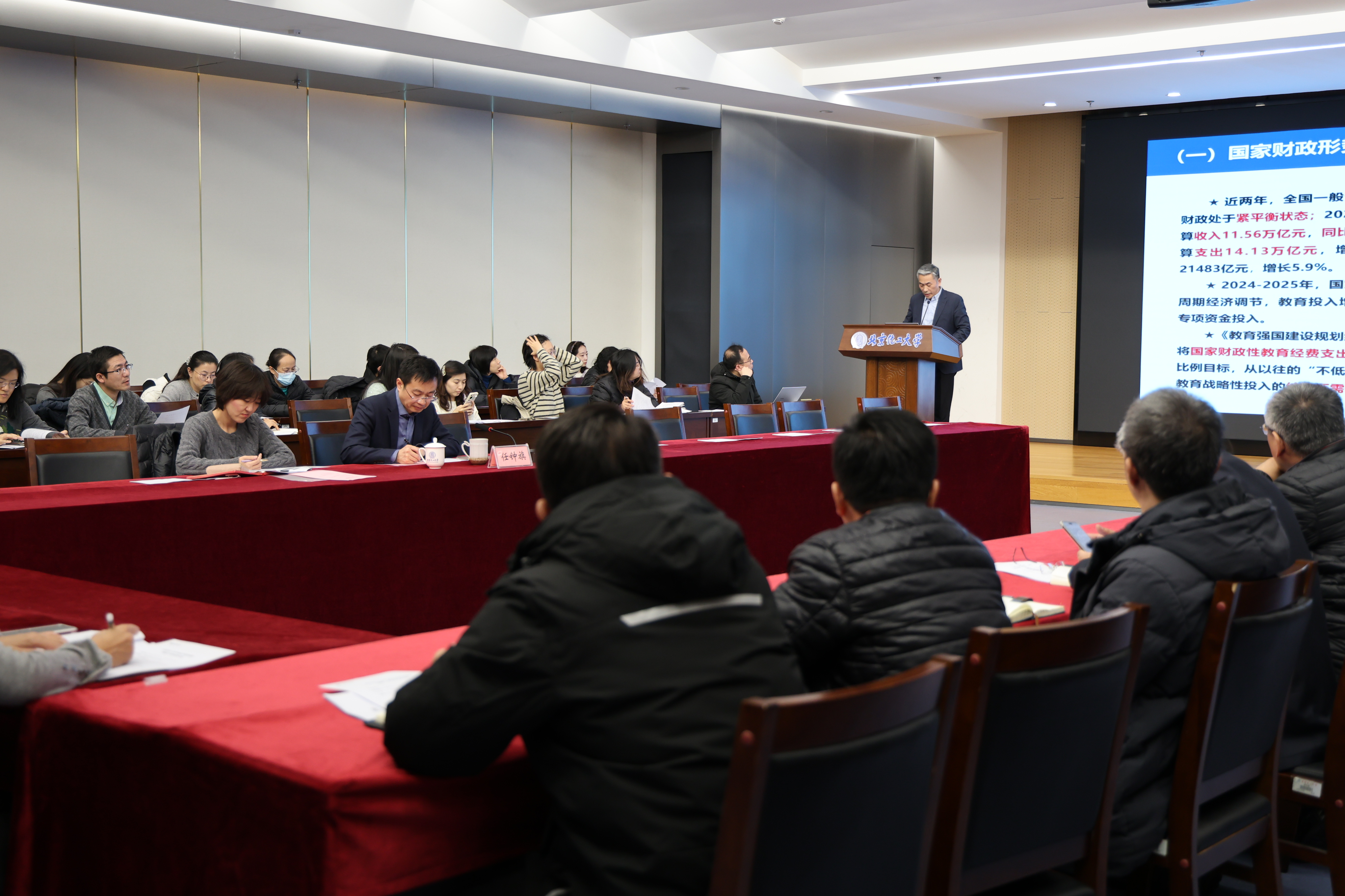 财务处处长赵春首先分析了当前国家财政形势及学校财务状况,解读了新修订印发的《北京化工大学预算管理办法(修订)》,并详细介绍了2026年校内预算编报工作的总体要求和具体安排。他指出,当前学校面临国家财政趋紧而教育投入要求提高的双重压力,且收入结构对财政拨款的依赖度持续攀升,亟需通过做优增量、盘活存量,实现资源配置效率最优化。同时,新修订的预算管理办法着力构建多层次责任体系,全面规范预算管理内容与调整程序,从严加强结转结余资金管理,进一步强化绩效导向的核心作用。他强调,2026年预算编制要聚焦保障学校重大战略任务,始终坚持过紧日子,从严从紧安排支出,持续深化零基预算改革,全面强化绩效管理,提升资金配置效益,并依托数智技术与财会监督,筑牢风险防控体系,以高水平财务治理服务学校高质量发展大局。